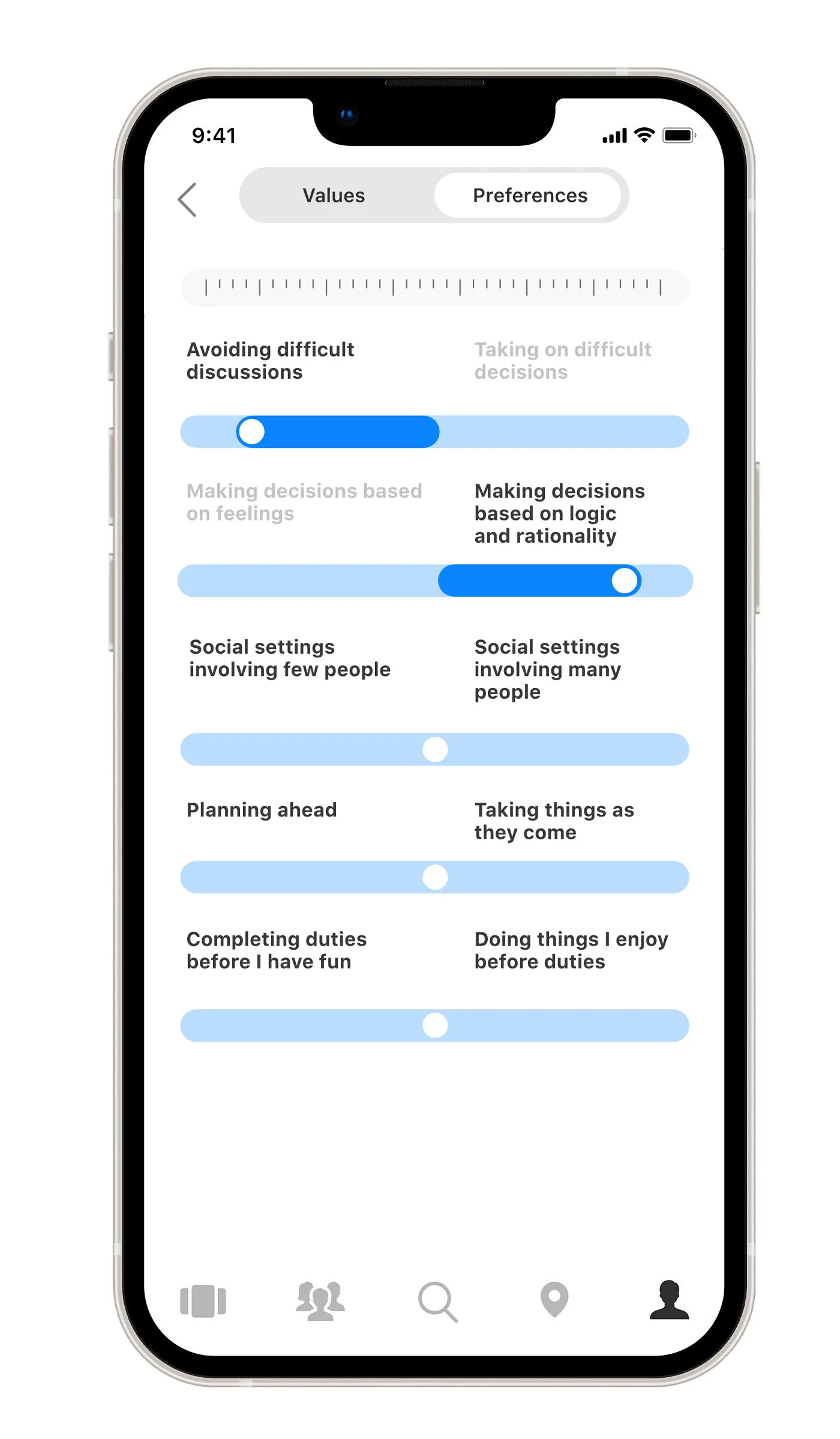 Our product photography depicts the app and its features and can be combined with headings and subheadings when appropriate neutral space is available.